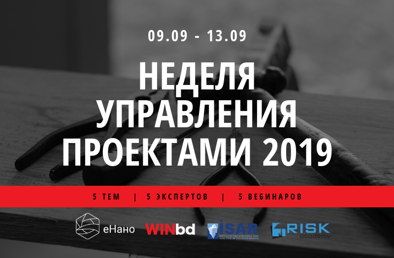 С 9 по 13 сентября АНО «еНано» проведет на платформе edunano.ru «Неделю управления проектами 2019» – открытое онлайн-мероприятие для руководителей и менеджеров проектов, владельцев и членов команд стартапов, технопредпринимателей, которое станет ежегодным. Неделя проводится при поддержке Фонда инфраструктурных и образовательных программ, компании WIN Бизнес решения, Института стратегического анализа рисков и Риск-Академии.