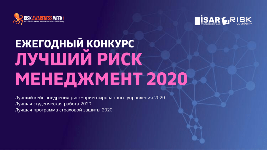 Ежегодный конкурс «Лучший Риск Менеджмент 2020» организован АНО ДПО «ИСАР» для оценки достижений отдельных лиц, команд или организаций в области управления рисками и страхования. Цель конкурса способствовать развитию и внедрение лучших практик риск-ориентированного управления и страхования в компаниях реального сектора в России и СНГ.