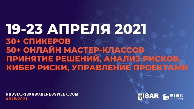19 по 23 апреля 2021 года пройдет крупнейшая русскоязычная конференция «Неделя риск менеджмента»! Лучшие мировые эксперты по управлению рисками проведут онлайн мастер-классы. Мы приглашаем практикующих риск менеджеров из СНГ выступить со своими докладами на онлайн конференции.